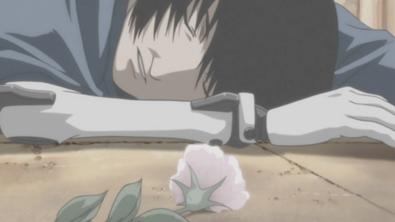 A worried Doc calls Keigo Oonishi, as Ichise has not been found yet. Meanwhile, Ichise is wandering the streets of Lux, having much trouble with his new arm and leg. Ran watches him from behind. He gets into a kitchen and eats whatever he finds there. Eventually he is found and thrown out.